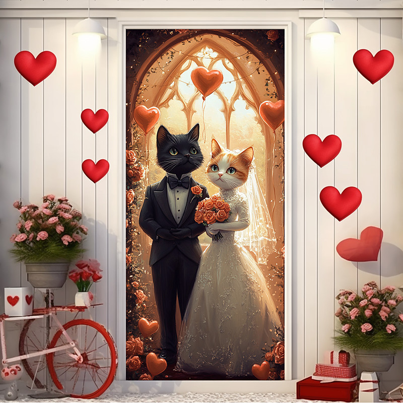 Wedding Outdoor Decorations Door Covers Door Tapestry Door Curtain Decoration Backdrop Indoor/Outdoor Door Banner for Front Door Farmhouse Cat Couple