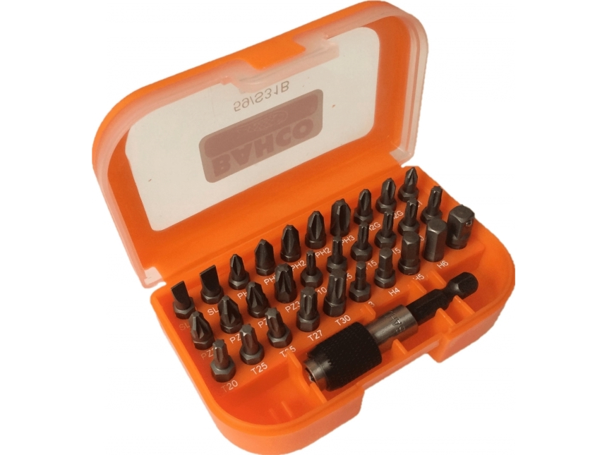 BAHCO Bit-Satz mit 31 Teilen, für gerade, Phillips-, Pozidriv-, Torx®- und Unbrako®-Schrauben, inkl. 1/4-Bithalter und 1/4-Adapter