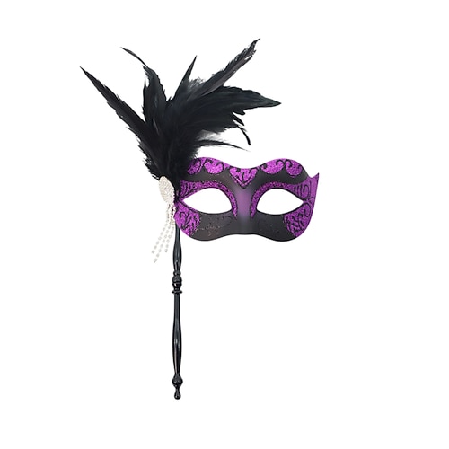 Maschera da ballo in piuma verde da donna con dettagli in strass e perle, da tenere in mano, per feste di Natale e balli del Grande Gatsby carnevale