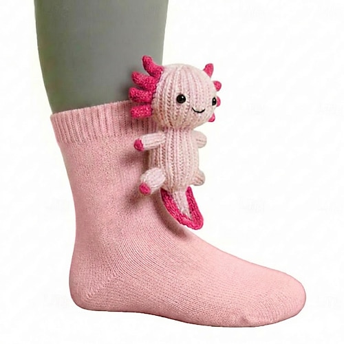 Calzini natalizi in maglia 3D con animali / calzini divertenti natalizi / calzini invernali in cotone / calzini da ciclismo termici caldi antivento 1 paio in poliestere con animali bianco giallo rosa taglia unica