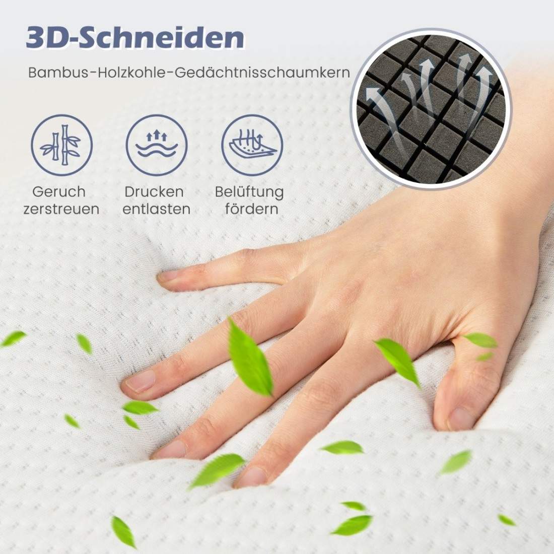 Bambus aktivert karbon putesett med 2 40 x 60 cm soveputer for smertelindrende søvn hvit