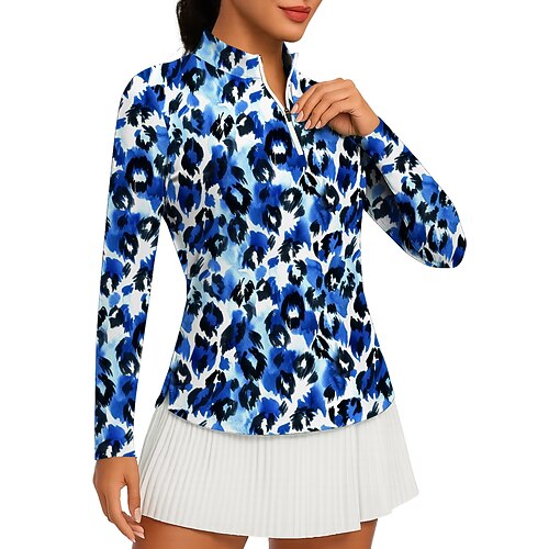 Per donna Animale Leopardo Top Polo da golf Maglia da tennis Manica Lunga Stampato Zip a un quarto Pullover Protezione UV Elastico Traspirante Tennis Golf Pickleball Collo alla coreana Collo con zip