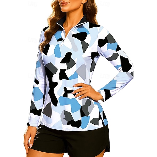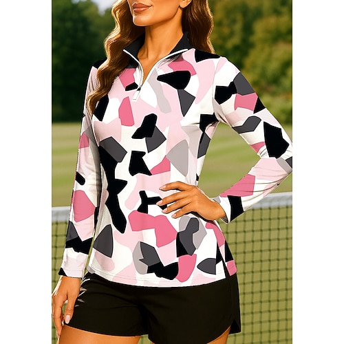 Per donna Geometrico Top Polo da golf Maglia da tennis Manica Lunga Stampato Zip a un quarto Pullover Protezione UV Elastico Traspirante Tennis Golf Pickleball Collo alla coreana Collo con zip
