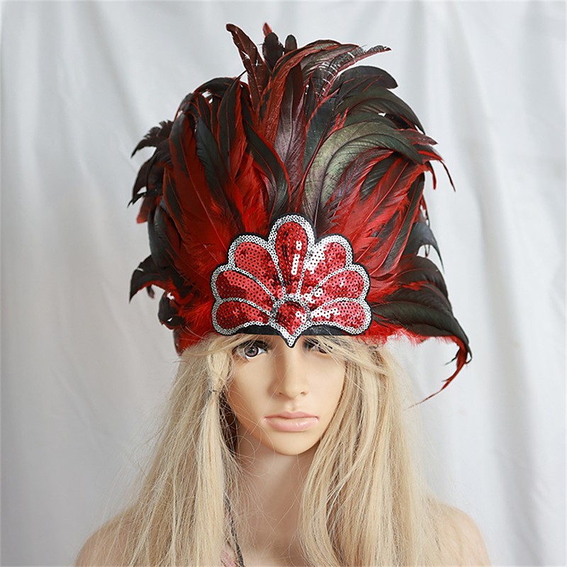 Carnival 2026Rio Carnival Samba Accessories Carnival Feather Headdress for Women - Sequin Peacock Blue Green Costume Headpiece - Brazil Festival Performance Costume