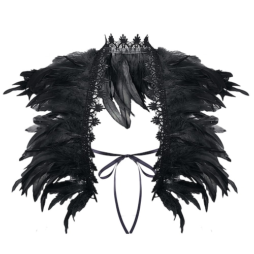 Accessori Samba Carnevale 2026 Rio Carnevale Mantello Stola Piume Nere Donna con Applicazioni in Pizzo Costume per Festival in Brasile