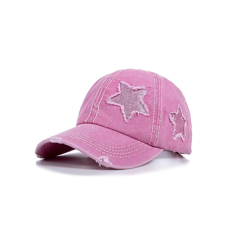 Women's Distressed Baseball Cap with Star Embroidery, Ponytail Hole Design, Adjustable Vintage Style Hat for Outdoor Activities, Sports, and Casual Wear