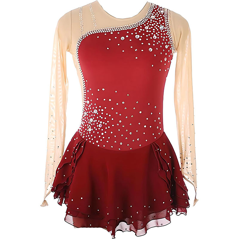 Figure Skating Dress Women's Girls' Ice Skating Dress Red High Elasticity Training Competition Skating Wear Classic Crystal / Rhinestone Long Sleeve Ice Skating Figure Skating