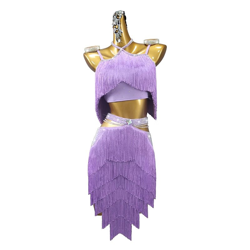 Latin Salsa Dance Dress Crystal / Rhinestone Tassel Pure Color Women's Performance Sleeveless Spandex