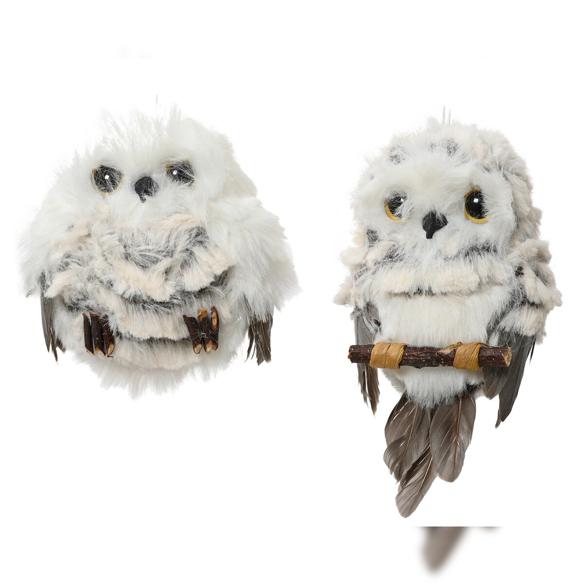1 Eule Dekofigur Kunstfell 8cm zum Aufhängen Weihnachtsfigur Schneeeule Deko Figur Weihnachten Tierfigur Weihnachtsdeko Plüschfigur Weiß Grau