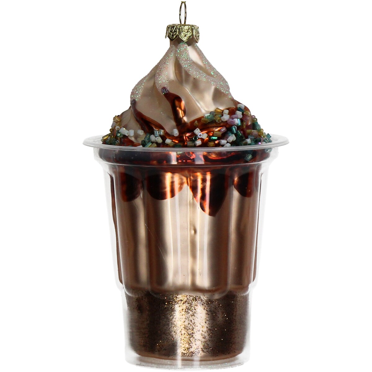 Christbaumschmuck Glas 13,5cm Eisbecher Figur Handbemalt mit Glitzer Weihnachtsbaum Anhänger Christbaumanhänger Weihnachtsbaumschmuck Deko Taupe Braun