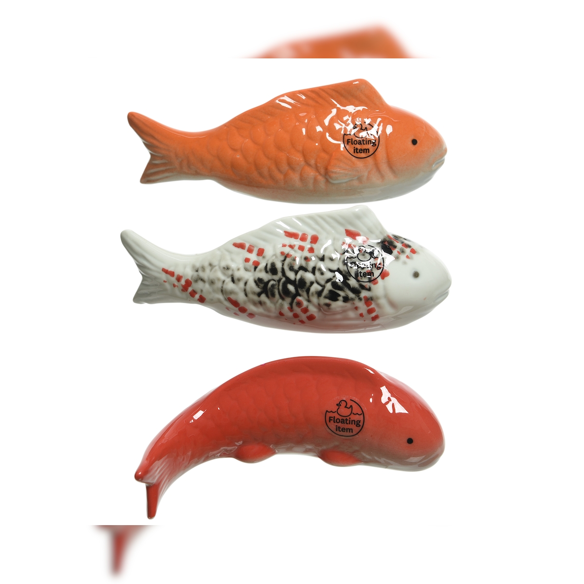 Decoris 1 Dekofiguren 16cm Porzellanfigur Koifisch Gartendekoration Teichdeko schwimmend Gartenteich Deko Koi Fisch Teichfigur Gartendeko Figur Orange Weiß