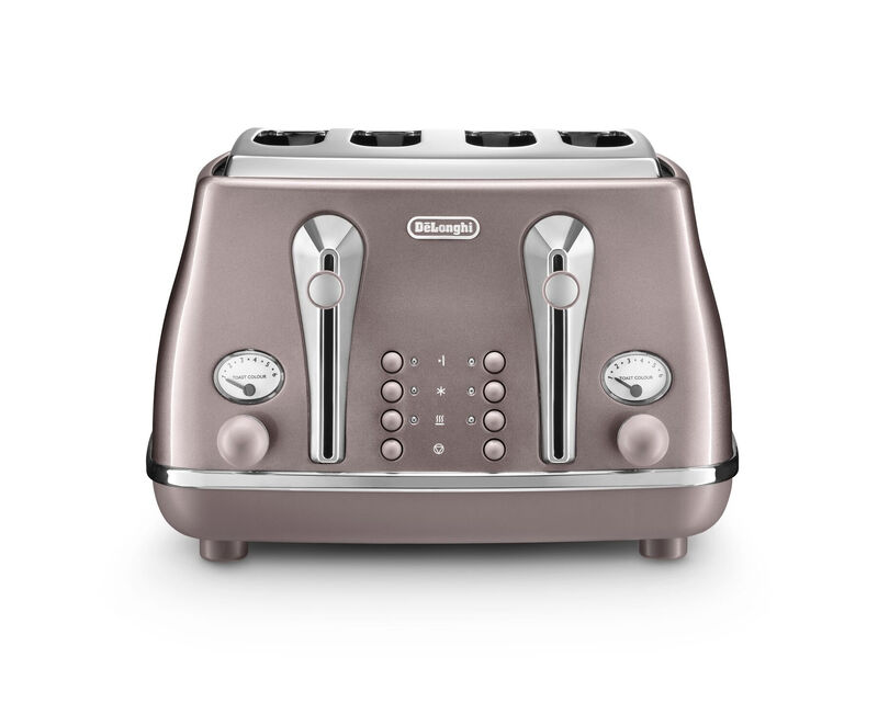 De'longhi Icona Metallics 4 Slice Toaster, Stainless Steel, Extra-Wide Slots, Pink - CTOT4003.PK