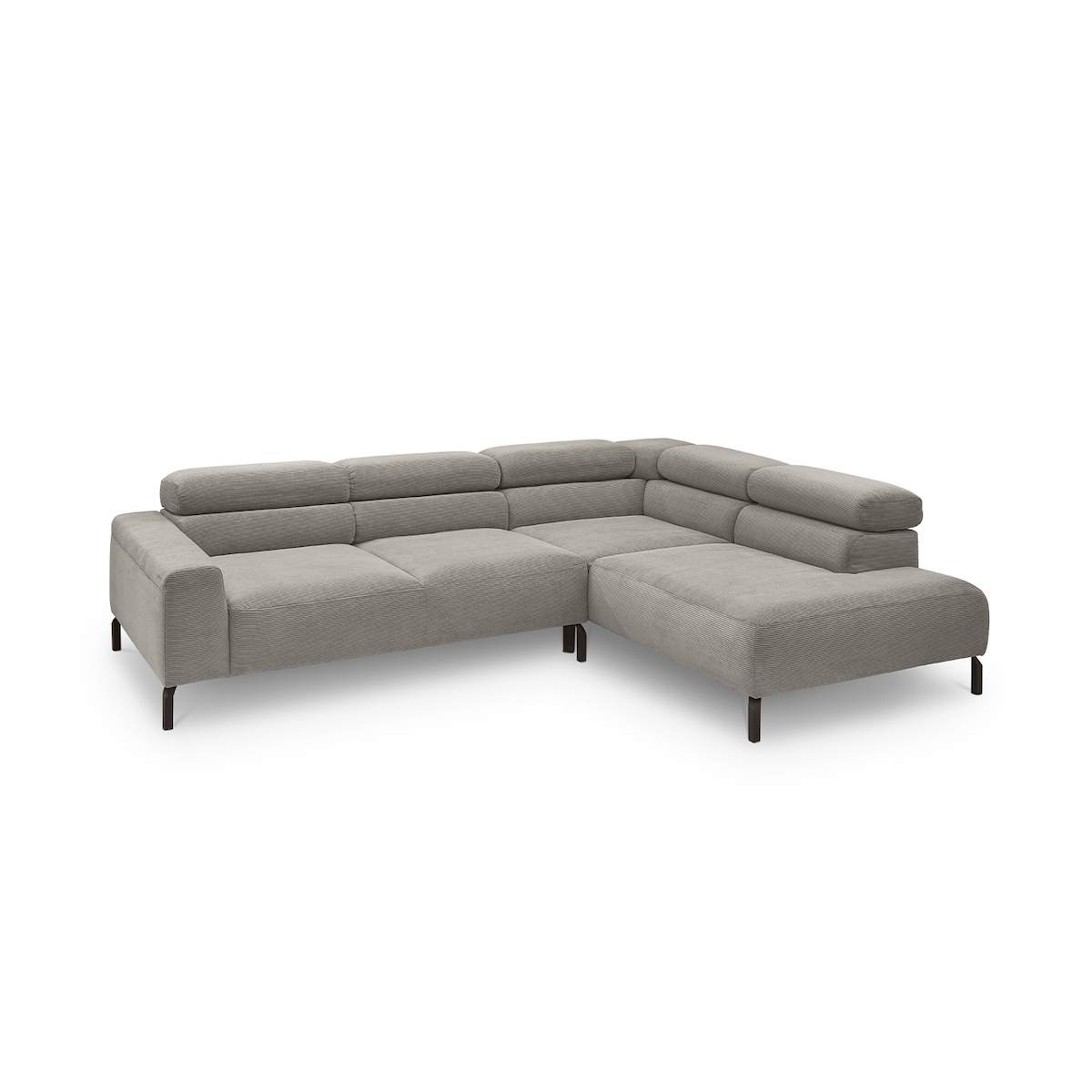 KAWOLA Sofa DELIA Ecksofa XL Cord grau mit motorischem Sitzvorzug Recamiere links
