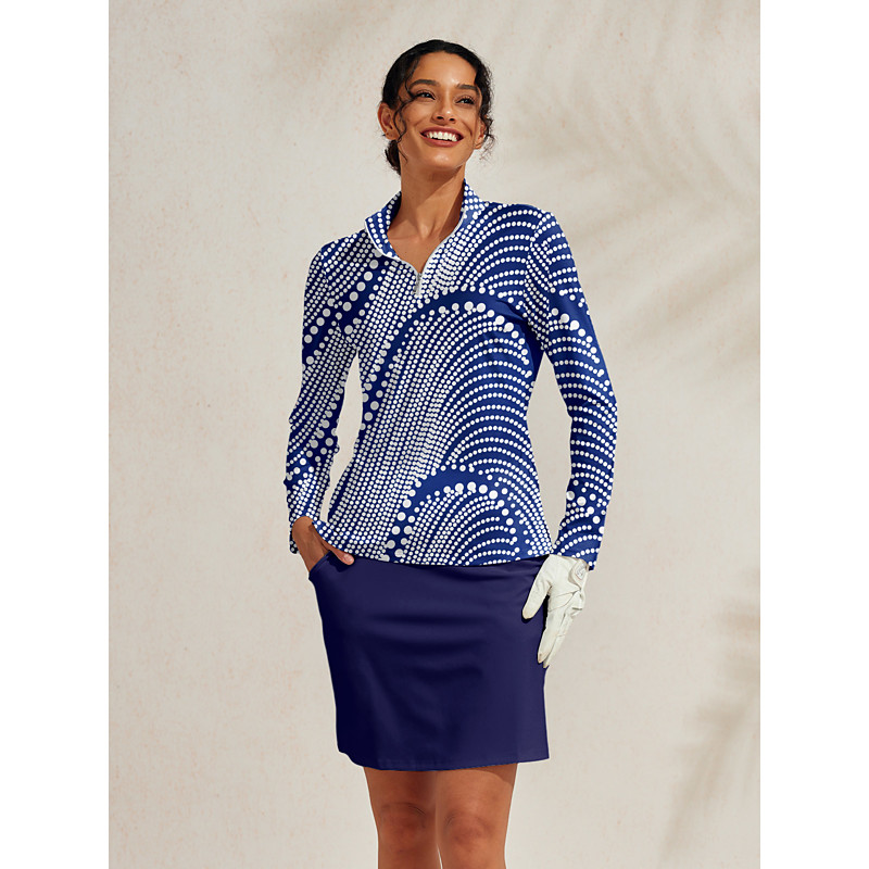 Women's Golf Polo Shirt Denim Blue Long Sleeve Top Ladies Golf Attire Clothes Outfits Wear Apparel