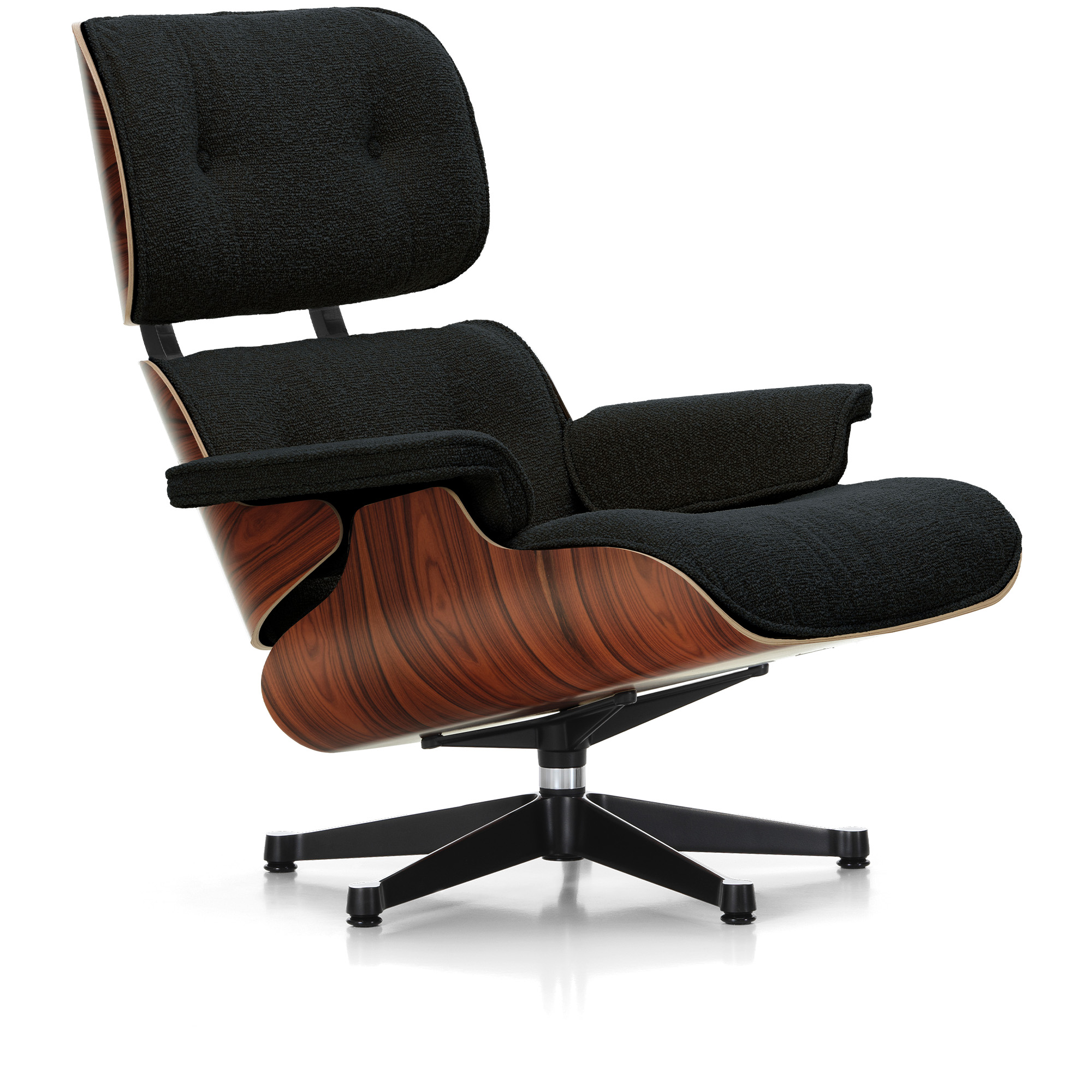 Vitra - Eames Lounge Chair Black Chestnut Nubia Salt’N Pepper 10 Polished Aluminium - Fåtöljer - Charles & Ray Eames - Läder/Metall/Trä