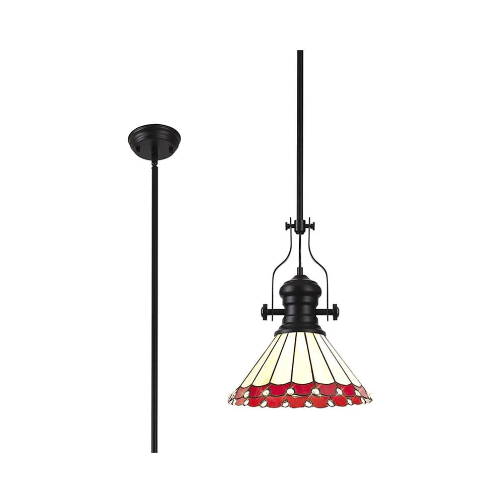 Sleek Pendant Light E27 With 30cm Tiffany Shade Matt Black/Red/Cream/Crystal Luxuria