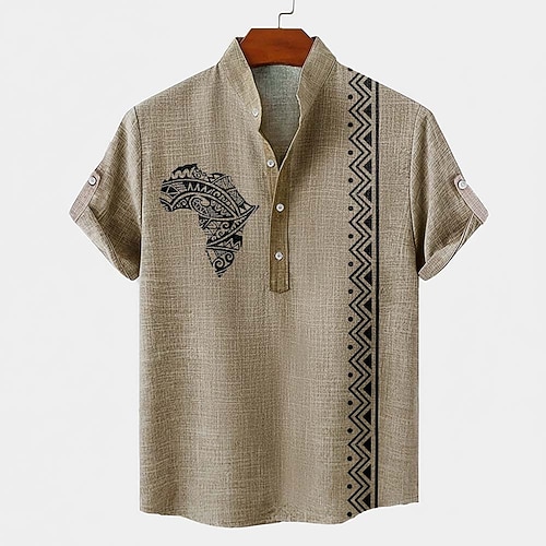 Herren Geometrisches Muster Stammes Ethik / Afrikanisch Hemd Durchgeknöpft Hemd Kurzarm Vintage-Retro Ferien Alltagstauglich Sommer Frühling Stehkragen Henley-Kragen 3D-Druck Leinenähnliches Hemd