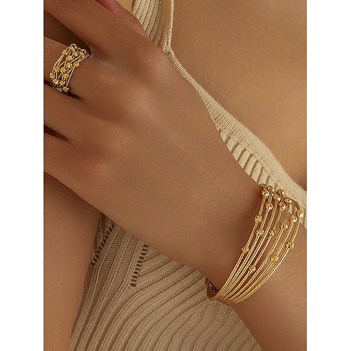Mehrreihiges Armband- und Ring-Set aus Gold für Damen – elegantes Schmuckset aus Metalldraht für Partys, Cocktailpartys und Abendveranstaltungen.