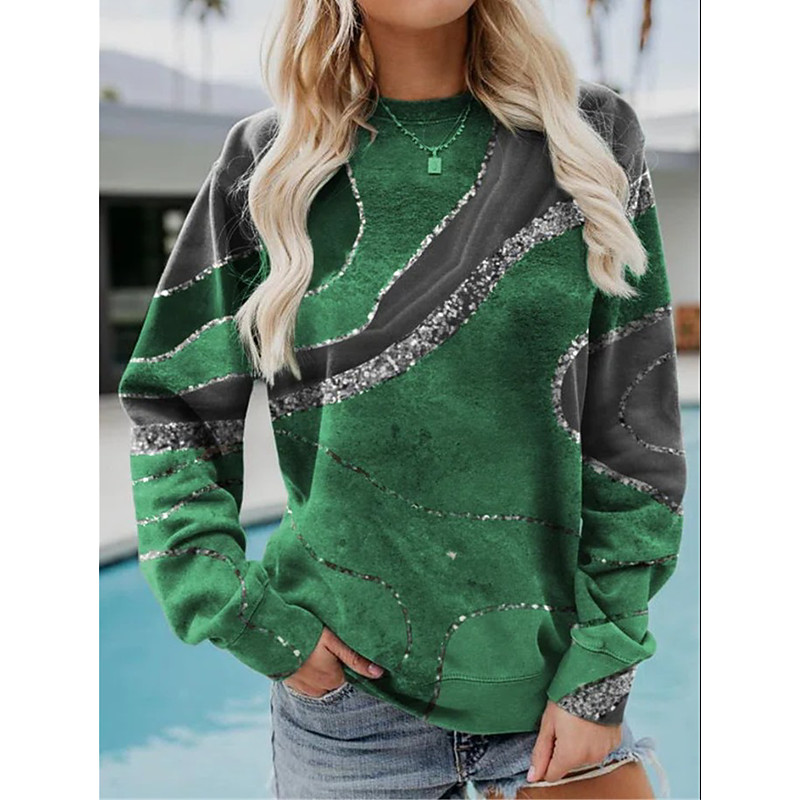 Women's Pullover Sweatshirt Graphic Striped Casual Long Sleeve Crew Neck Regular Tops Home Work Street Blue Denim Blue Green Khaki Army Green Spring Fall Winter