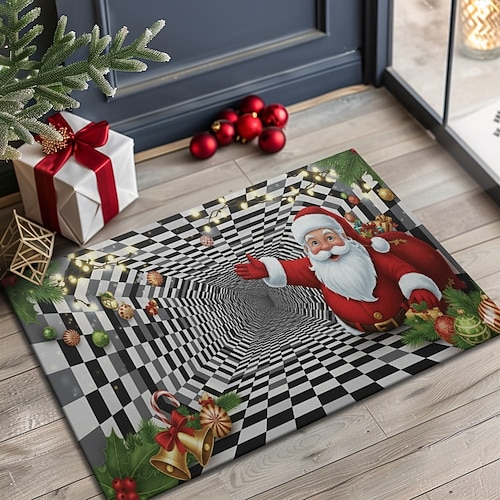 Tappeto d'ingresso natalizio 3D con Babbo Natale tappeto divertente in illusione ottica tappeto morbido antiscivolo tappeto in finto cashmere per la porta d'ingresso per interni ed esterni