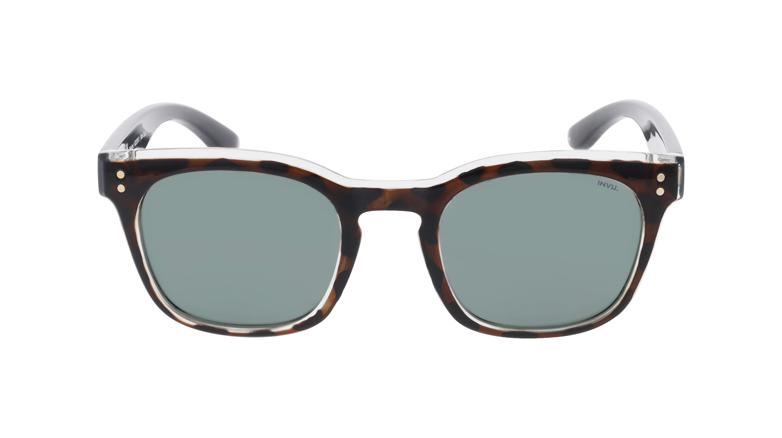 INVU Round Womens Demi Tortoise Brown Gold Grey Polarized B2135 Metal - One Size | INVU Sale | Discount Designer Brands