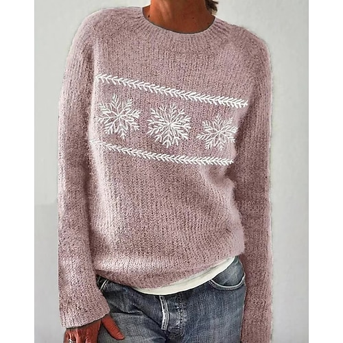Damen Weihnachtspullover Fair Isle Pullover Pullover Fair Isle Sweater Lässig Weihnachtsrentier Schneeflocken Gerippt Rundhalsausschnitt Gestrickt Druck Langarm Normale Oberteile Stricken Weihnachten