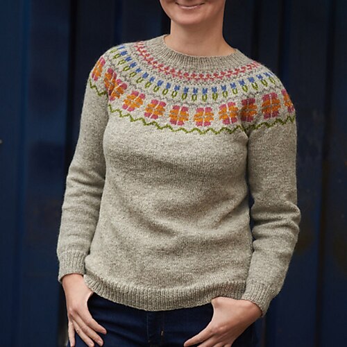 Damen Weihnachtspullover Fair Isle Pullover Pullover Fair Isle Sweater Mode Blumen Gerippt Rundhalsausschnitt Gestrickt Langarm Normale Oberteile Stricken Ausgehen Wochenende Weiß Blau Herbst