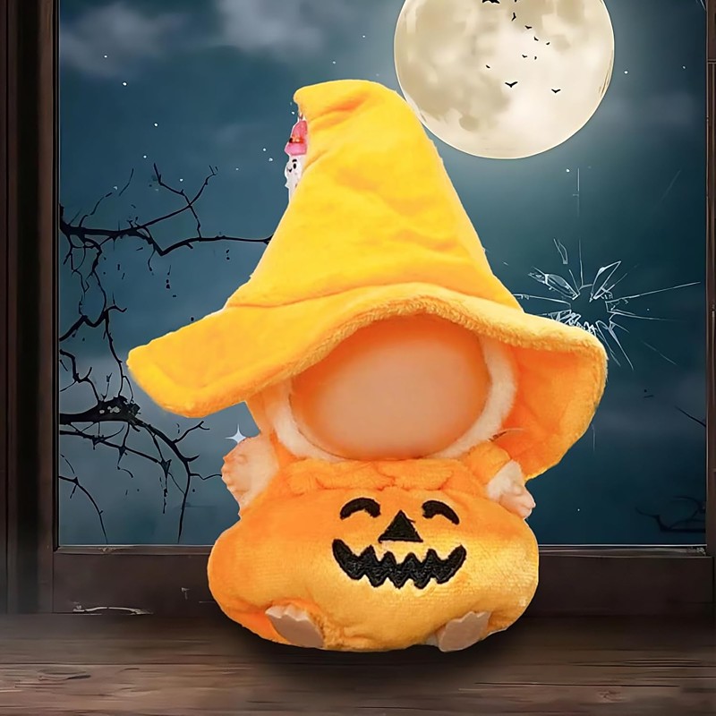 Kleidung für Labubu-Puppen – süßes Halloween-Outfit für 17 cm Kostümzubehör (keine Puppe) Modepuppen-Kleidungsset, abnehmbares Kawaii-Outfit mit Kürbis-Accessoires