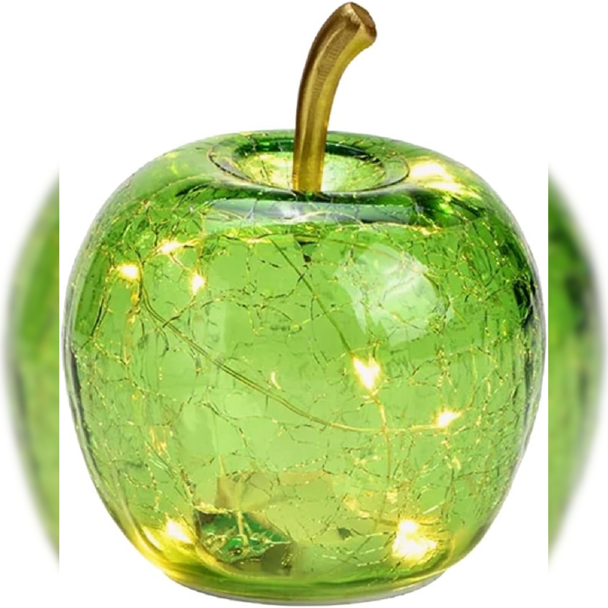 LED Dekolampe Apfel Glas 10er LED Lichterkette Timer Ø11cm hellgrün