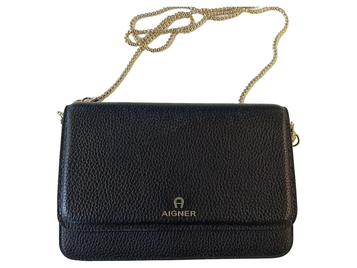 AIGNER kleine Handtasche Leder schwarz 19.5 cm Wallet on Chain