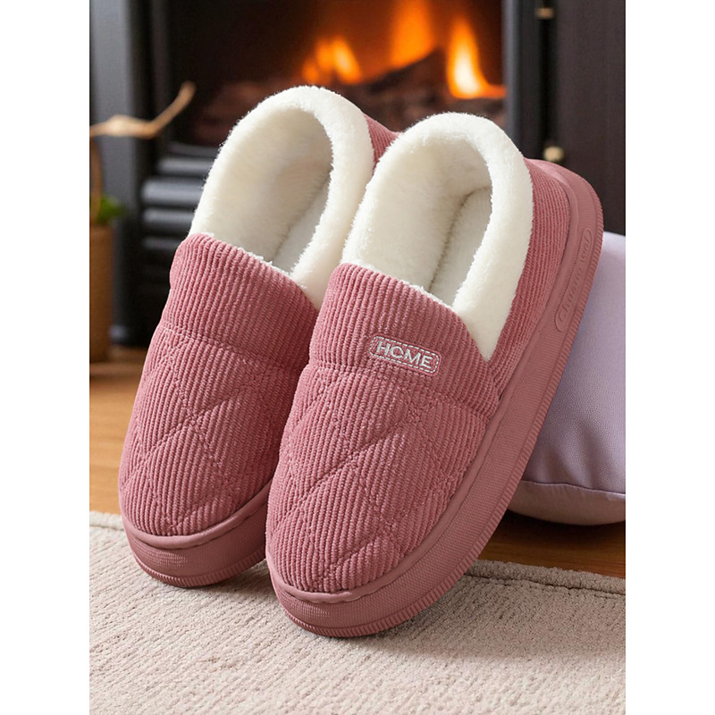 Women's Pink Plush Indoor Slippers with Fleece Lining – Cozy Non-Slip Winter House Shoes for Home Comfort