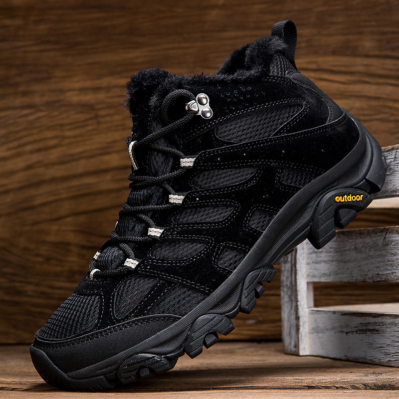 Men's Waterproof High-Top Winter Hiking Boots with Fur Lining, Durable Anti-Slip Sole, Outdoor Trekking Shoes for Cold Weather