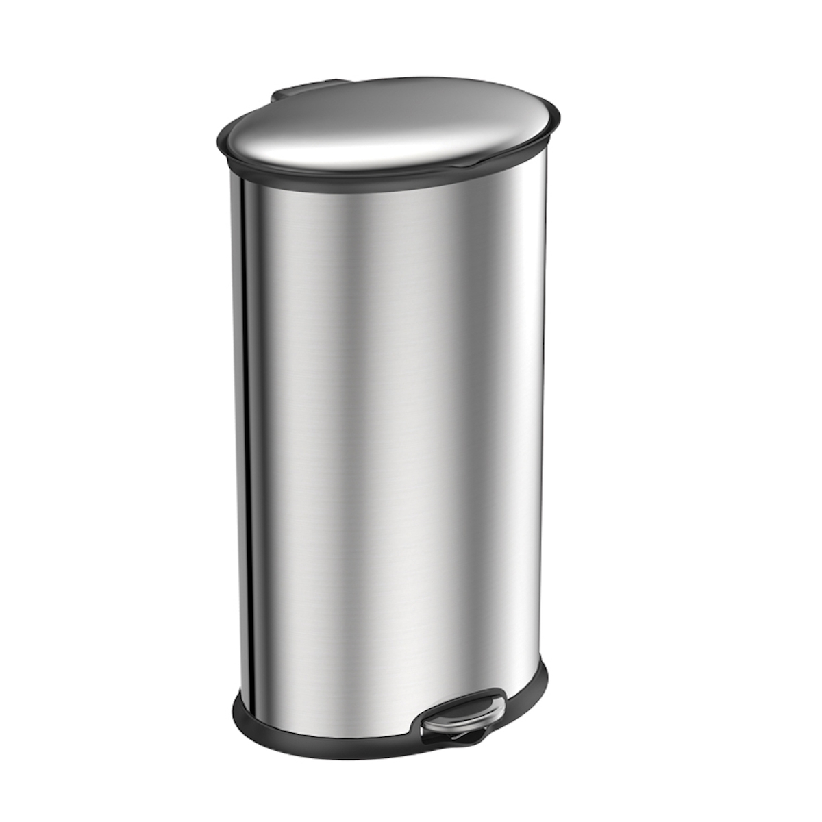 PROREGAL Modern designter Abfallsammler aus gebürstetem Edelstahl | 30 Liter, HxBxT66,5x40x25,2cm | Silber