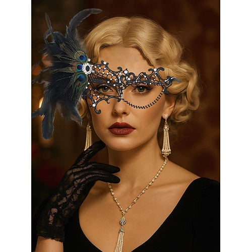Maschera da donna in pizzo con piume verdi, dettagli di pavone e strass, accessorio per costume gotico vintage per la festa di Halloween