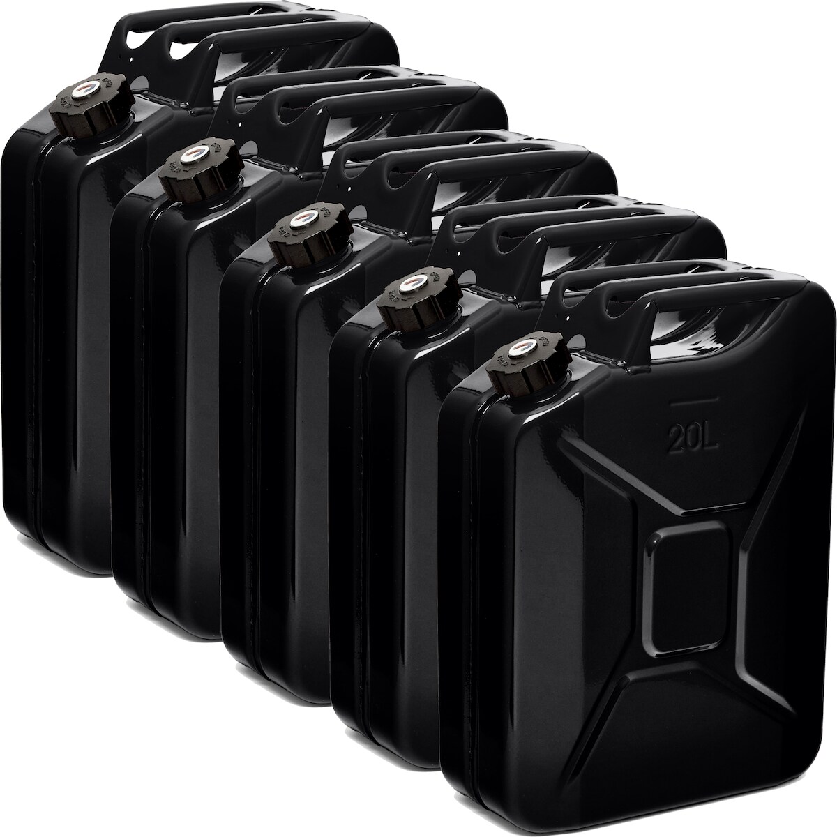 BW® Kraftstoffkanister Metall Benzinkanister 5x 20 Liter mit Schraubverschluss - Schwarz - RAL 9005 - TÜV-geprüft und UN-Zulassung - Made in Europe