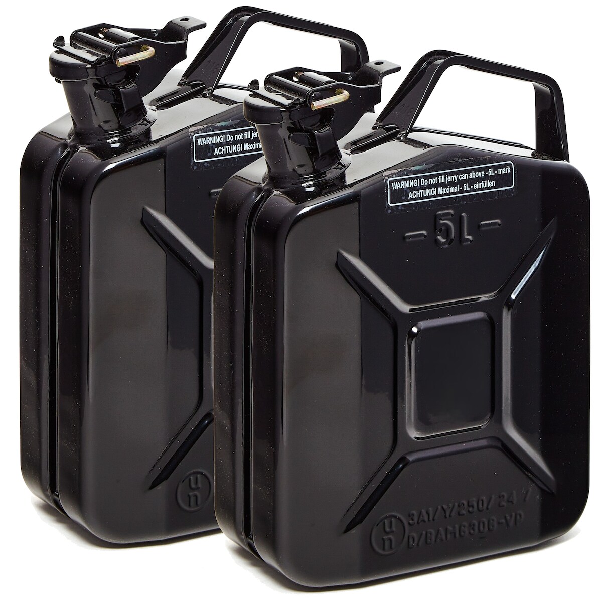 BW® Kraftstoffkanister Metall Benzinkanister 2x 5 Liter - Schwarz - RAL 9005 - TÜV-geprüft und UN-Zulassung - Made in Europe