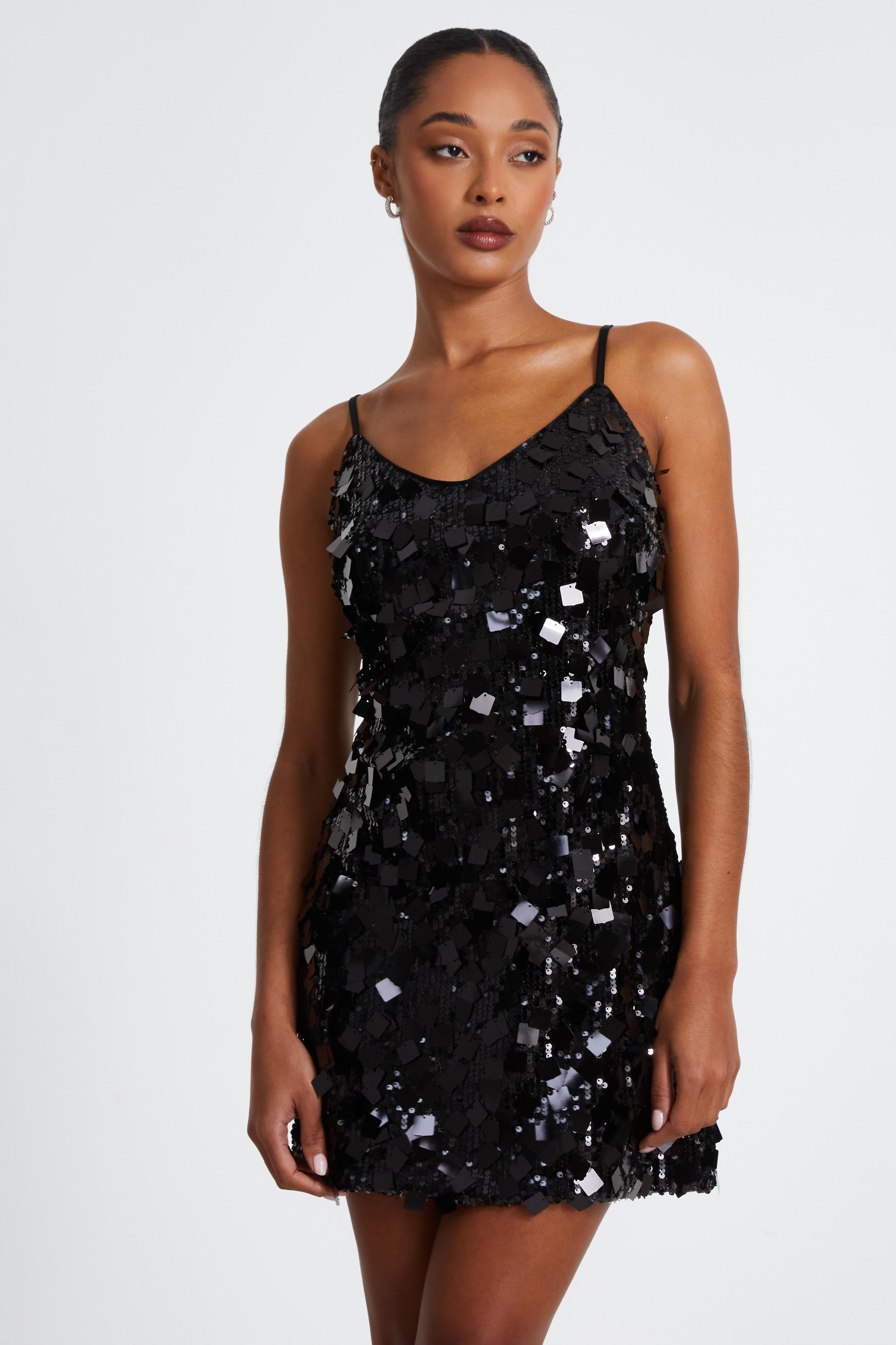 Quiz Womens Black Sequin Mini Dress - Size 6 UK | Quiz Sale | Discount Designer Brands