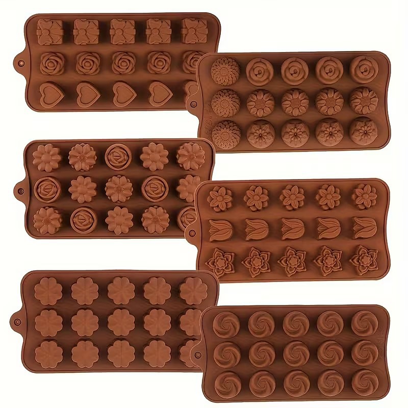 6-Pack Silicone Chocolate Molds, Flower-Shaped Food-Grade Non-Stick Baking Molds for Candy, Butter, Desserts in Assorted Shapes