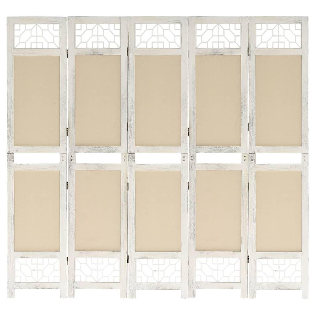 5-panels rumdeler 175x165 cm stof cremefarvet