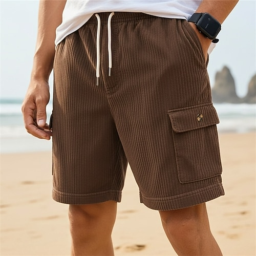 Per uomo Pantaloncini cargo Pantaloncini Estivi Pantaloncini casual Pantaloncini di velluto a coste Elastico in vita Coulisse Multi-tasche Semplice Comodità Traspirante Corto All'aperto Vacanza
