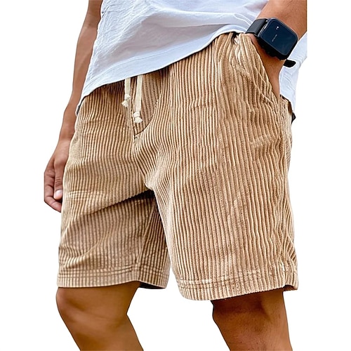 Per uomo Pantaloncini Estivi Shorts da Spiaggia Pantaloncini casual Pantaloncini di velluto a coste Coulisse Elastico in vita Tinta unica Comodità Traspirante Lunghezza al ginocchio Quotidiano