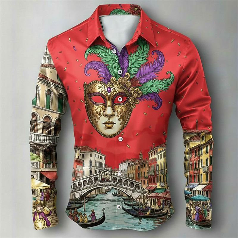 Venice Carnival Shirt for Men – Masquerade Mask Art Print