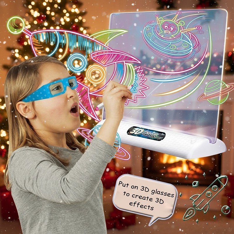 Ideal Christmas Gifts for Grandkids Girls Boys, 3D Fluorescent Drawing Board Magic Luminous Three-Dimensional Writing Board Graffiti Board Light Puzzle Children Drawing Board Christmas Gift