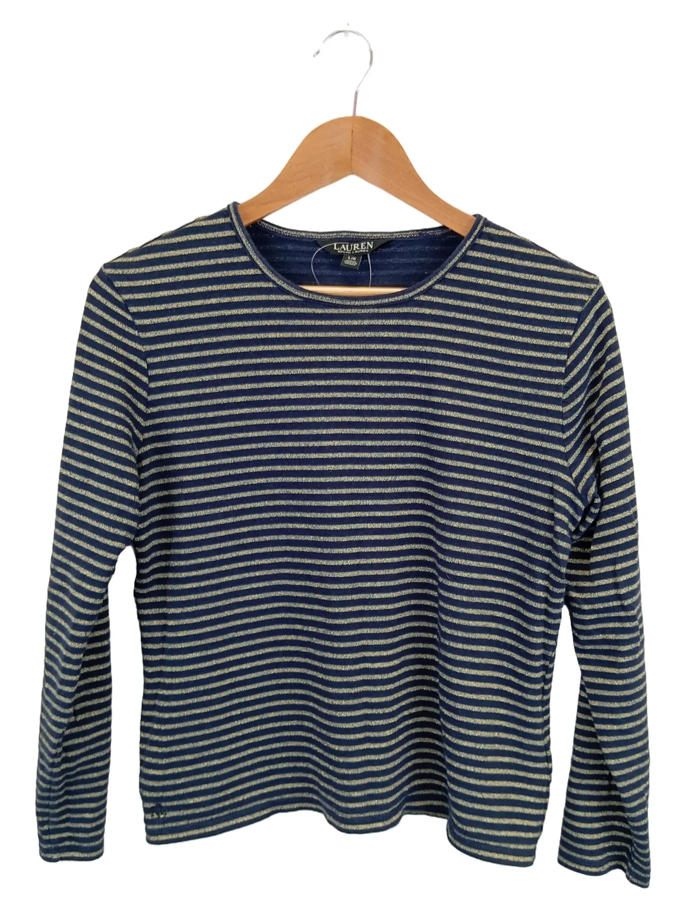 LAUREN RALPH LAUREN Damen Langarmshirt L Blau Goldstreifen