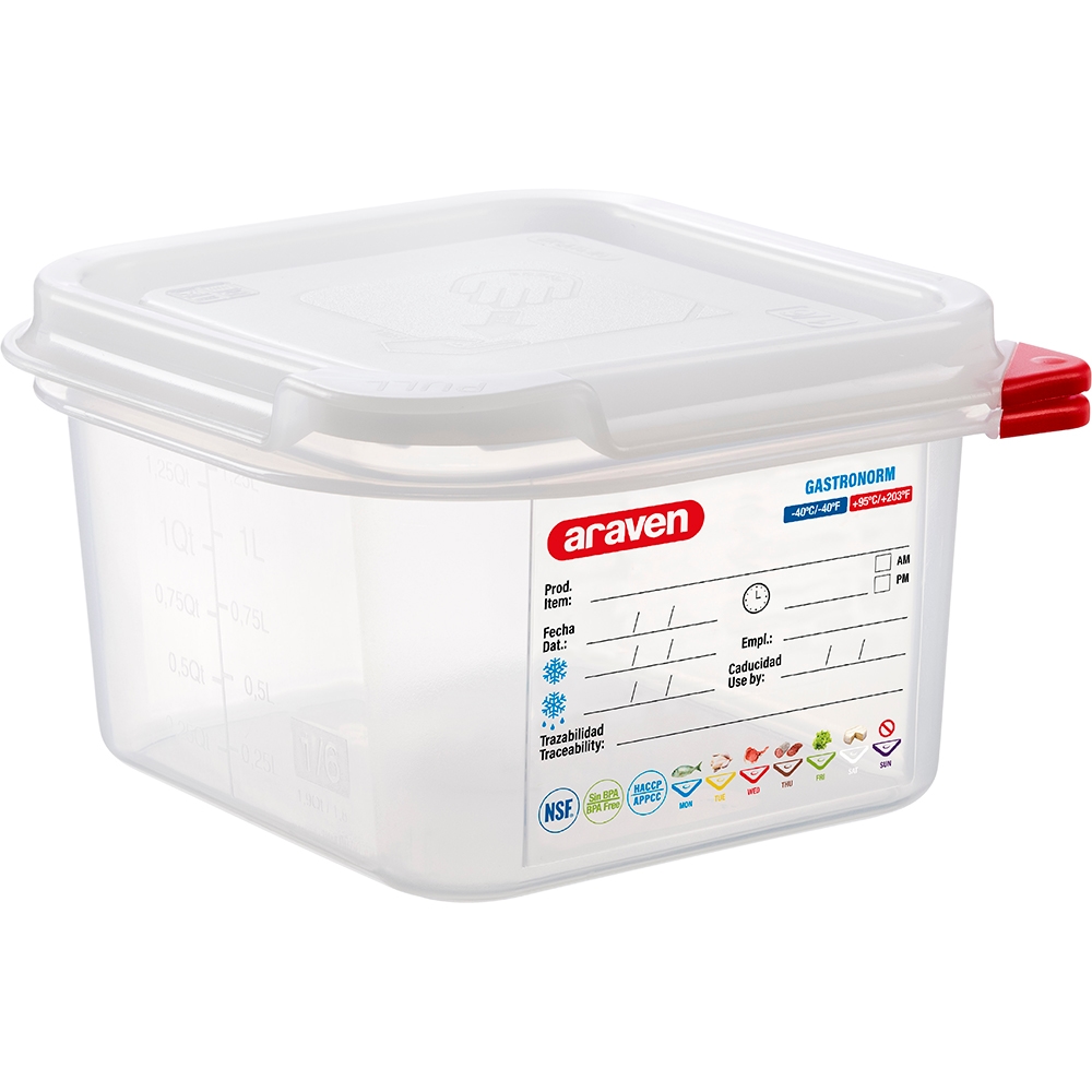 ARAVEN Gastronormbehälter mit Deckel, Polypropylen, GN 1/6 (100 mm)