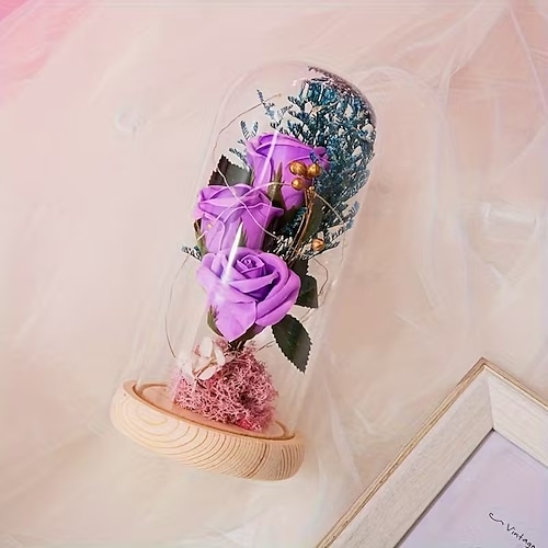 Regalo di rose per San Valentino per donne mamme mogli – cupola di rosa LED con base illuminata fiore di vetro multicolore ricordo decorativo romantico per ufficio e casa