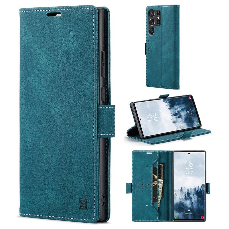 AUTSPACE A01 Plånboksfodral för Samsung Galaxy S22 Ultra Konstläder - Blå