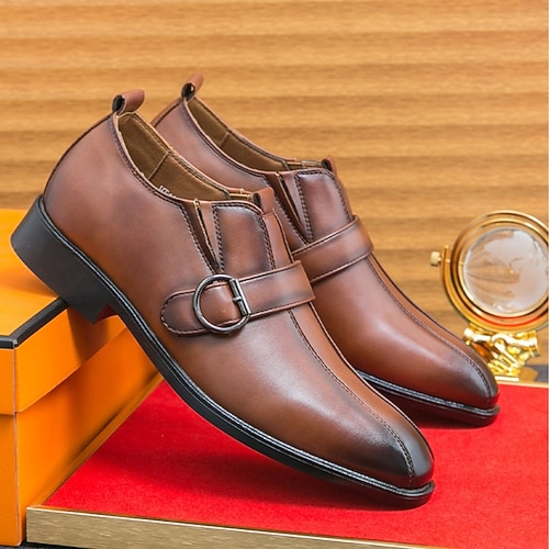 scarpe eleganti da uomo in pelle marrone con fibbia, scarpe formali da lavoro e da matrimonio