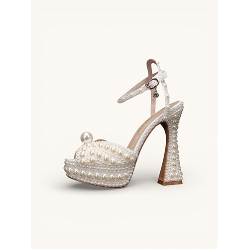 Scarpe da sposa eleganti con tacco alto e plateau color avorio e perle, per matrimoni in chiesa