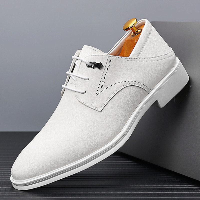 Men's White Faux Leather Dress Shoes, Classic Formal Footwear with Polished Finish, Perfect for Weddings and Special Events